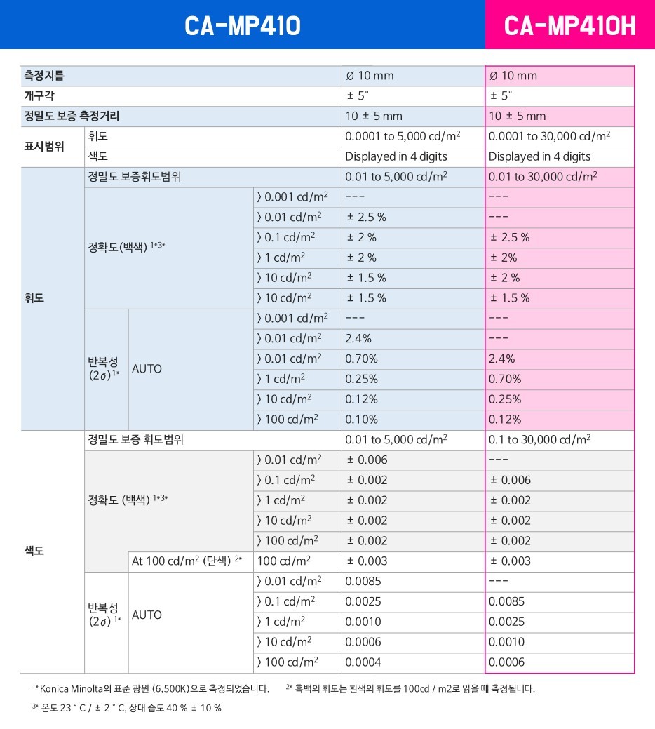 고휘도 모델 CA-MP410H (측정경:φ10mm)도 있습니다.
