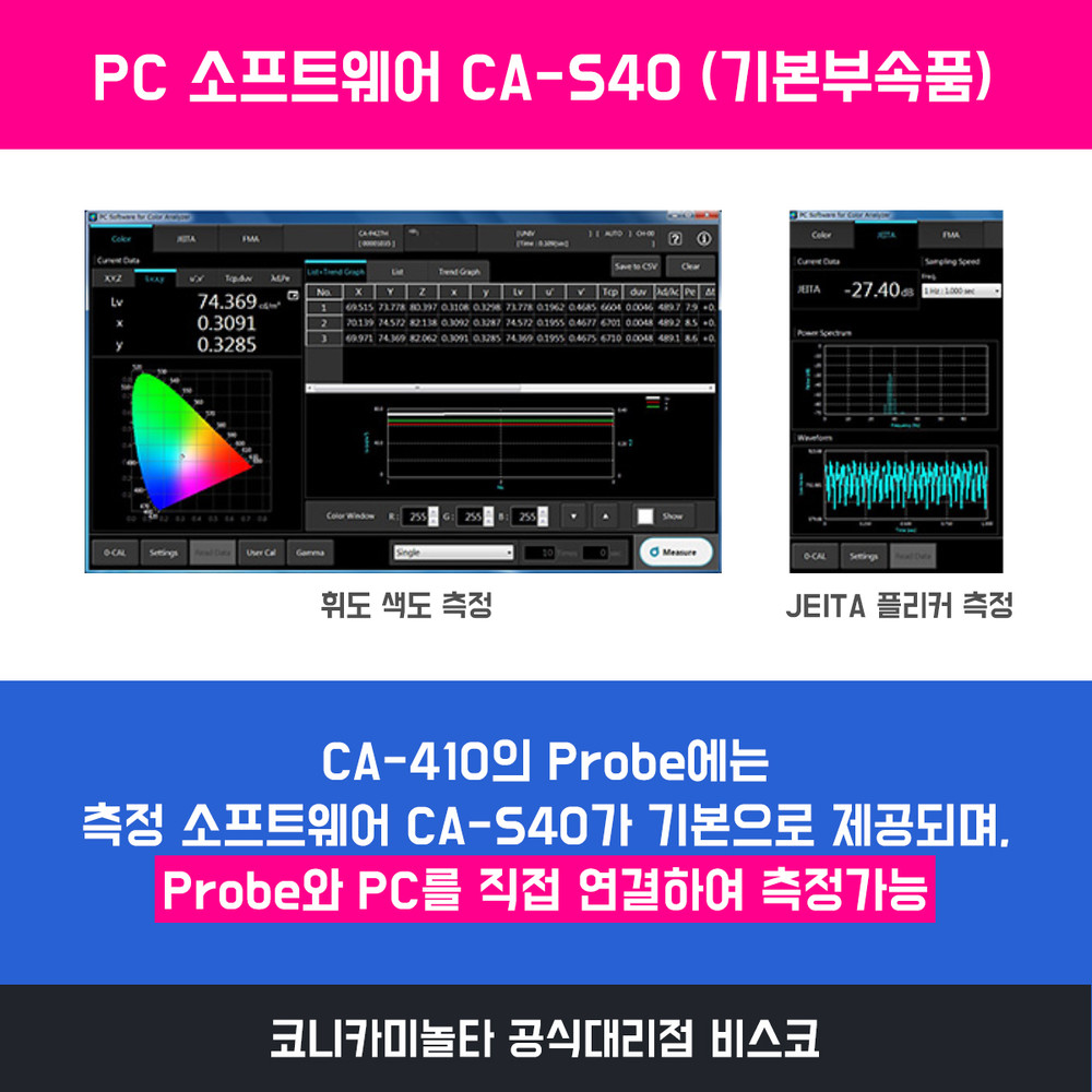 CA-410의 프로브에는 측정 소프트웨어 CA-S40가 기본으로 제공되며,