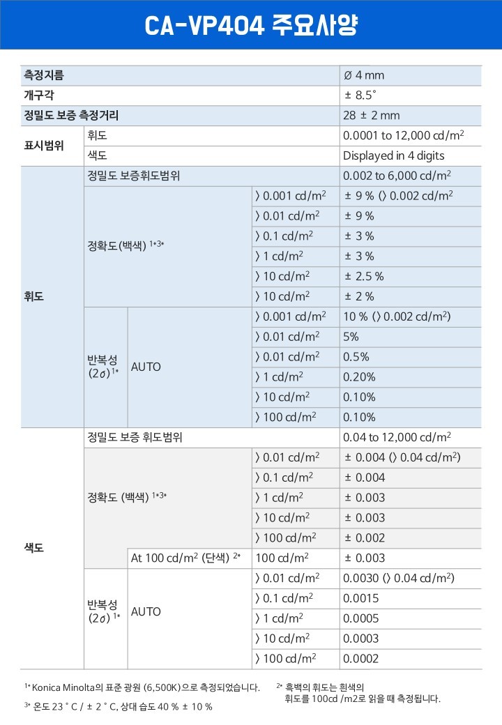 0.004 cd / m2의 정확도 보장으로 스마트 워치 OLED, 스마트 폰 엣지, 작은 APL (평균 픽셀 레벨) 창 등과 같은 작은 영역을 고속으로 정확하게 측정 할 수 있습니다.