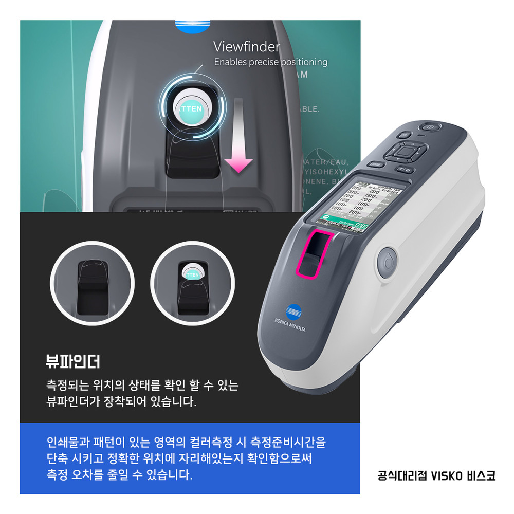 뷰파인더는 인쇄물과 패턴이 있는 영역의 컬러측정 시 측정 준비시간을 단축시키고