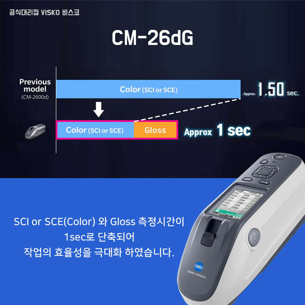 이는 작업능률을 올릴 수 있으며 CM-26dG를 사용하게되면 광택계로 기기를 변경해서