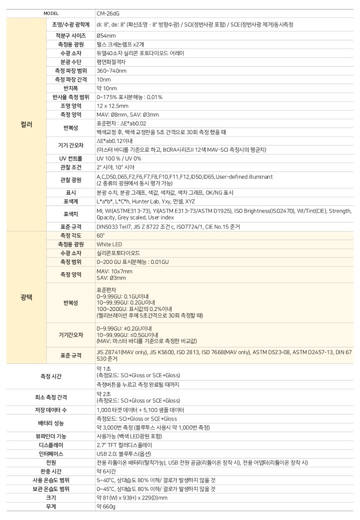 *CM-26dG는 CM-26d에 광택측정까지 추가된 신모델라인업입니다.