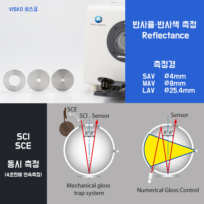 SCI+SCE 동시 측정(4초만에 연속측정 가능) 두가지모드의 반사율 측정가능
