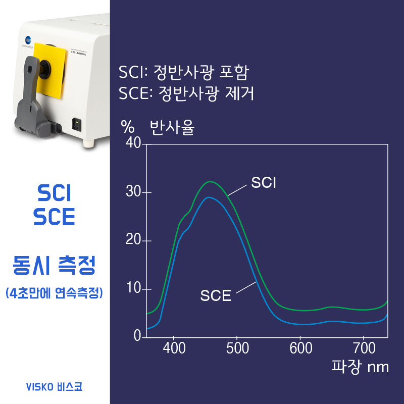 SCI(정반사광을 포함)의 반사율은 SCE(정반사광을 제외)반사율보다 높음