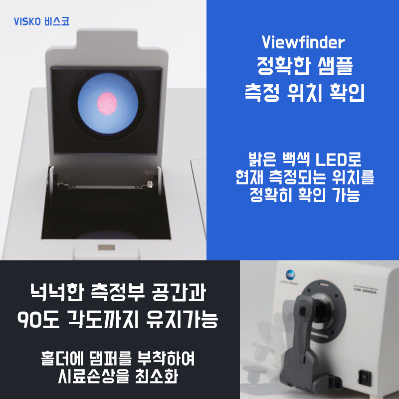 뷰파인더를 통해 측정면적 확인이 가능한 코니카미놀타 CM-3600A , 댐퍼를 부착해 시료 손상을 예방합니다.