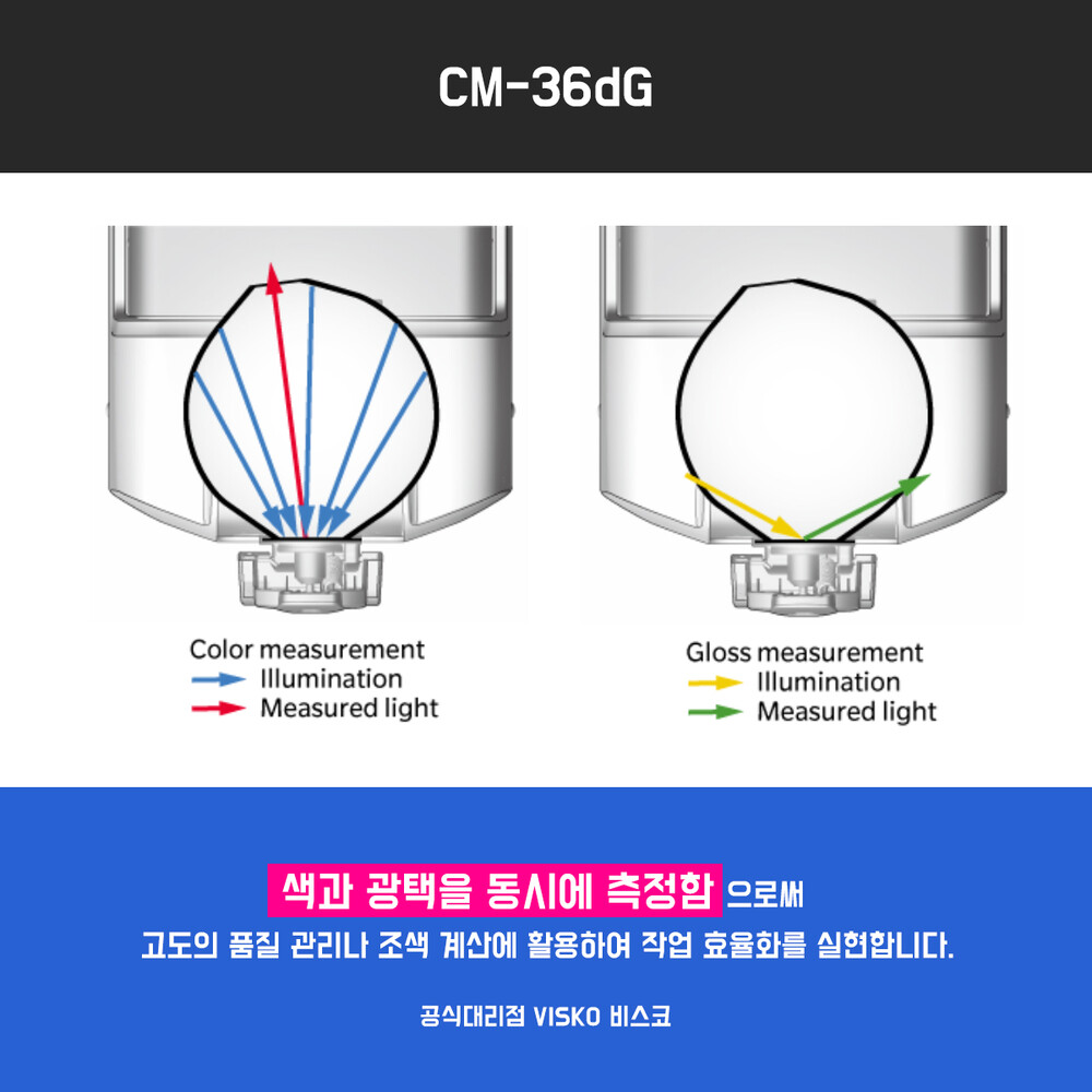 CM-36dG는 색측정과 동시에 60˚광택을 측정 할 수 있는 2 in 1 계측기로