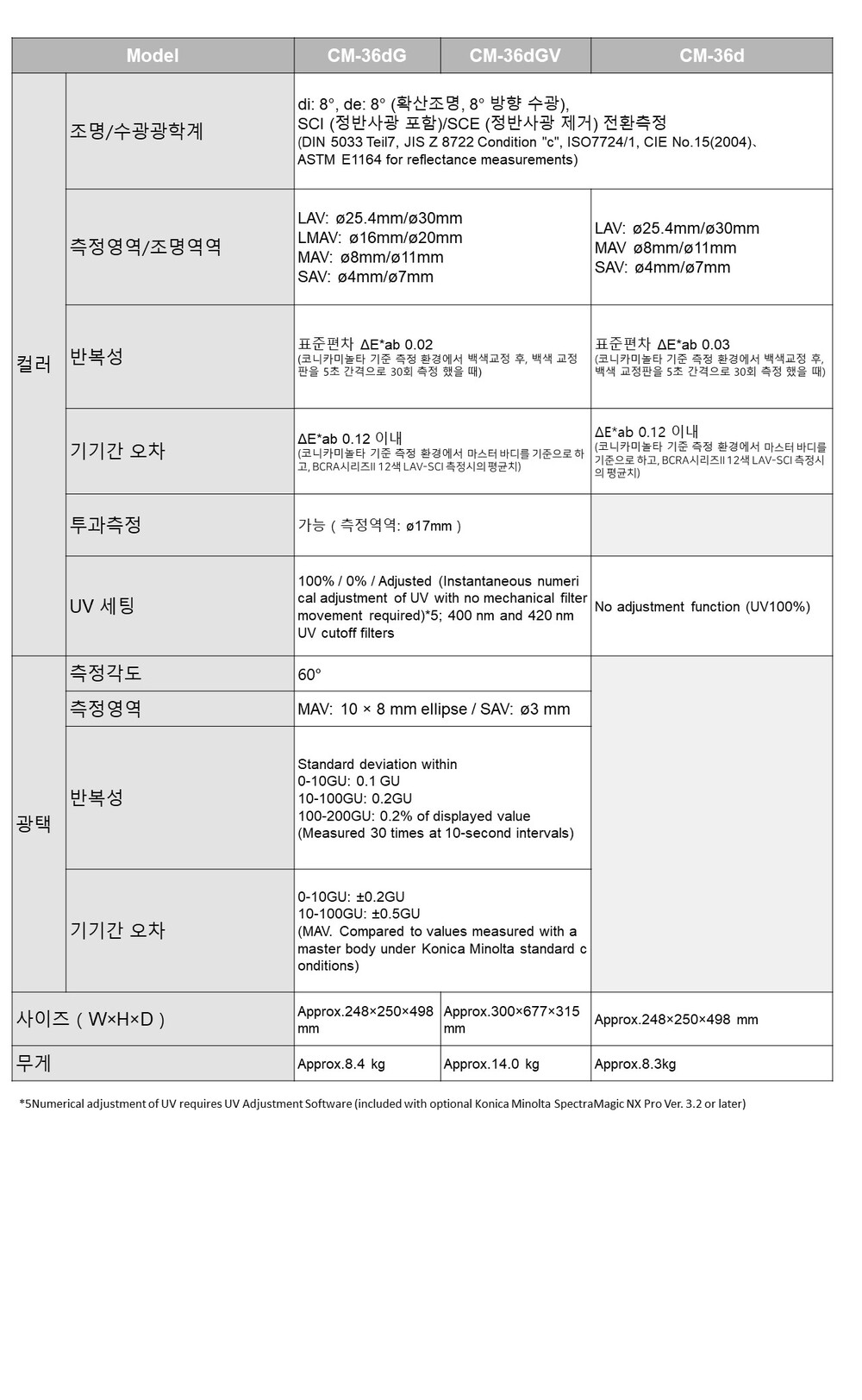 [CM-36dG/CM-36dGV, CM-36d 사양표]
