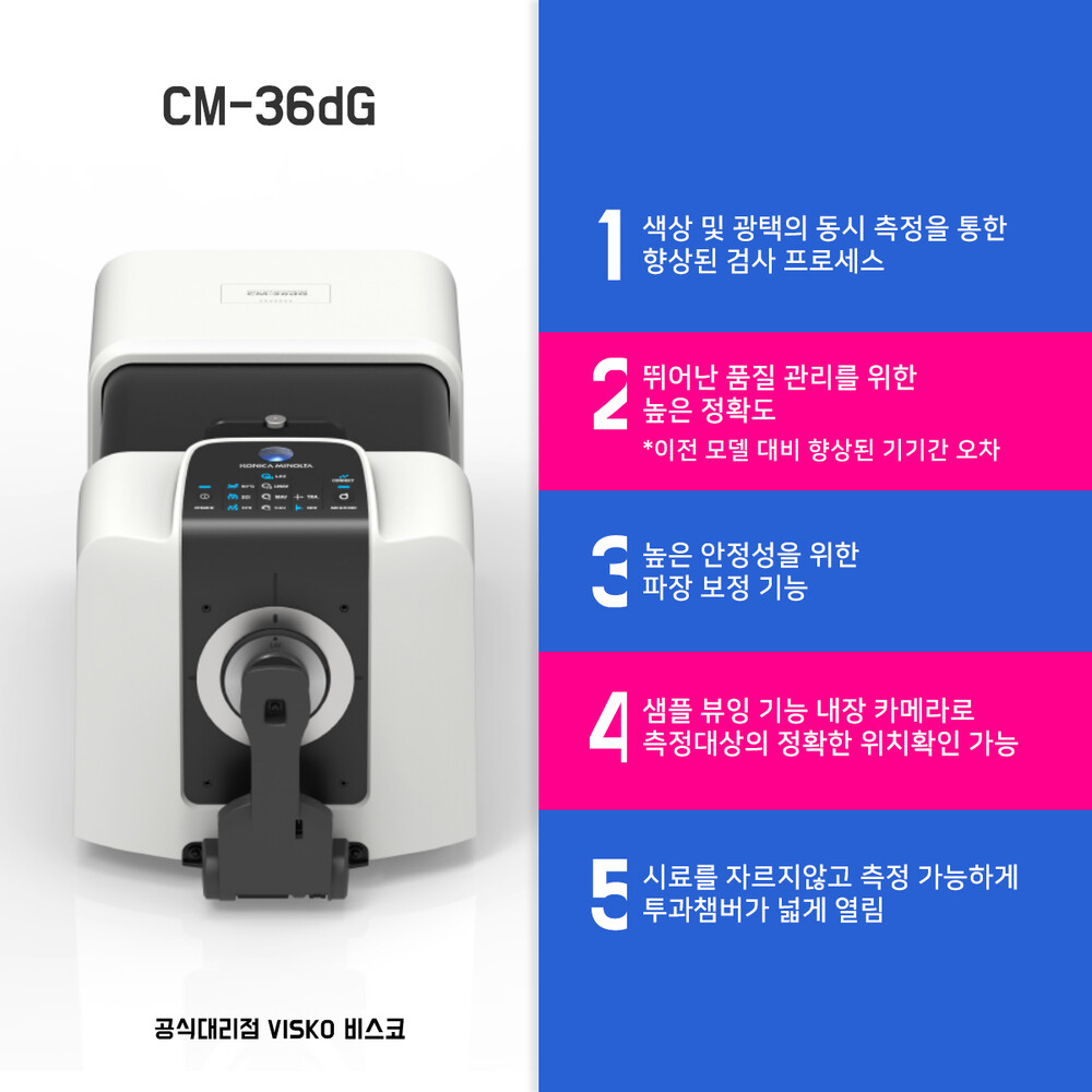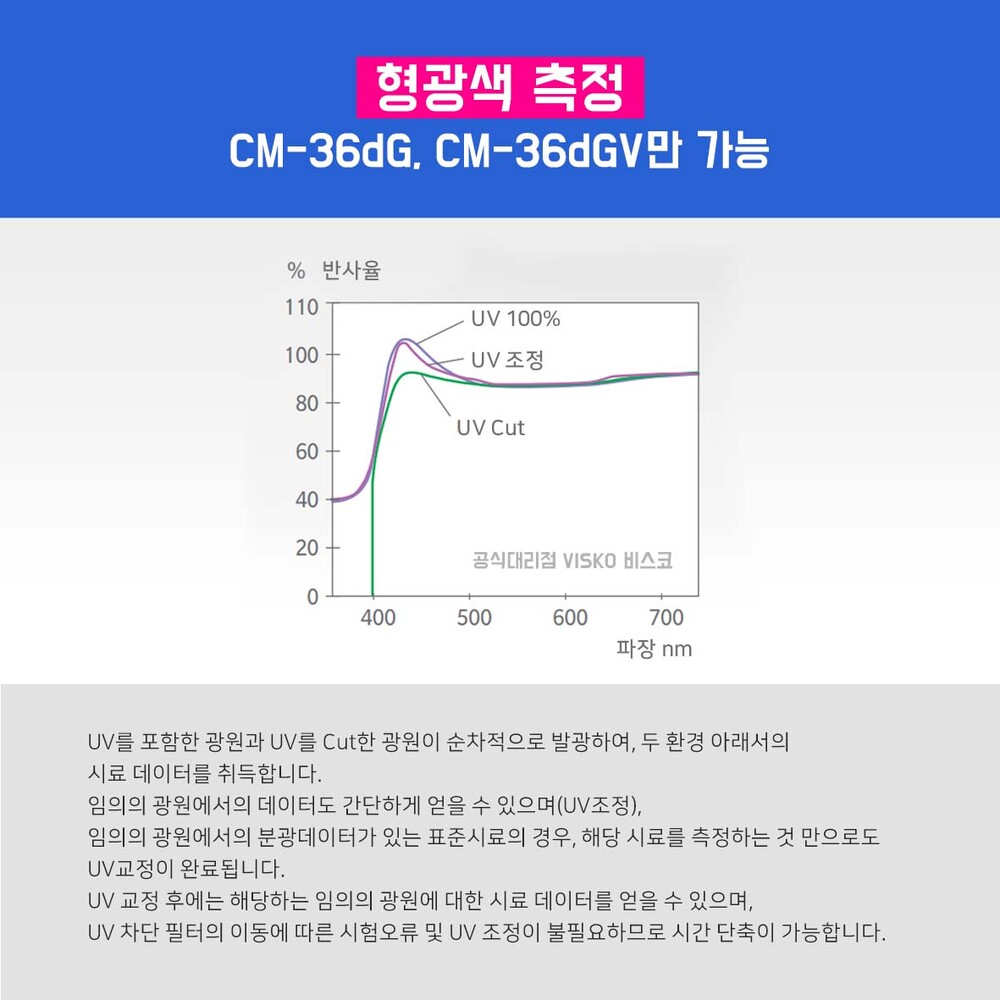 CM-36dG는 CM-3600A에 비해 기기간 오차 · 반복성 구현이 향상 되었습니다.