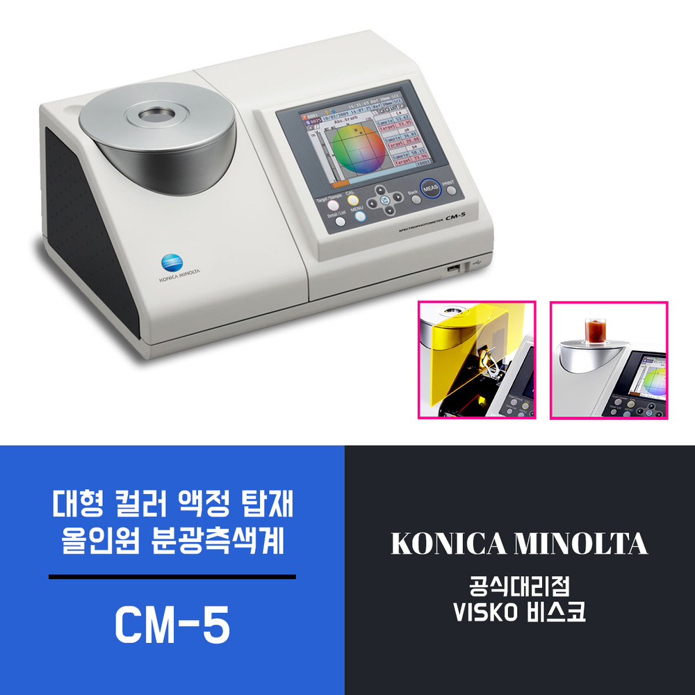 투과율, 투과, 반사율, 반사, 액상 색관리, 분말 색관리, 페이스트 등의 컬러측정을 할 수 있으며 모든 산업군에서 사용 될 수 있도록 제작된 분광측색계 CM-5는 하나의 기기에서 다양한 적용분야에 대응되기 때문에 올인원 분광측색계로도 불립니다.