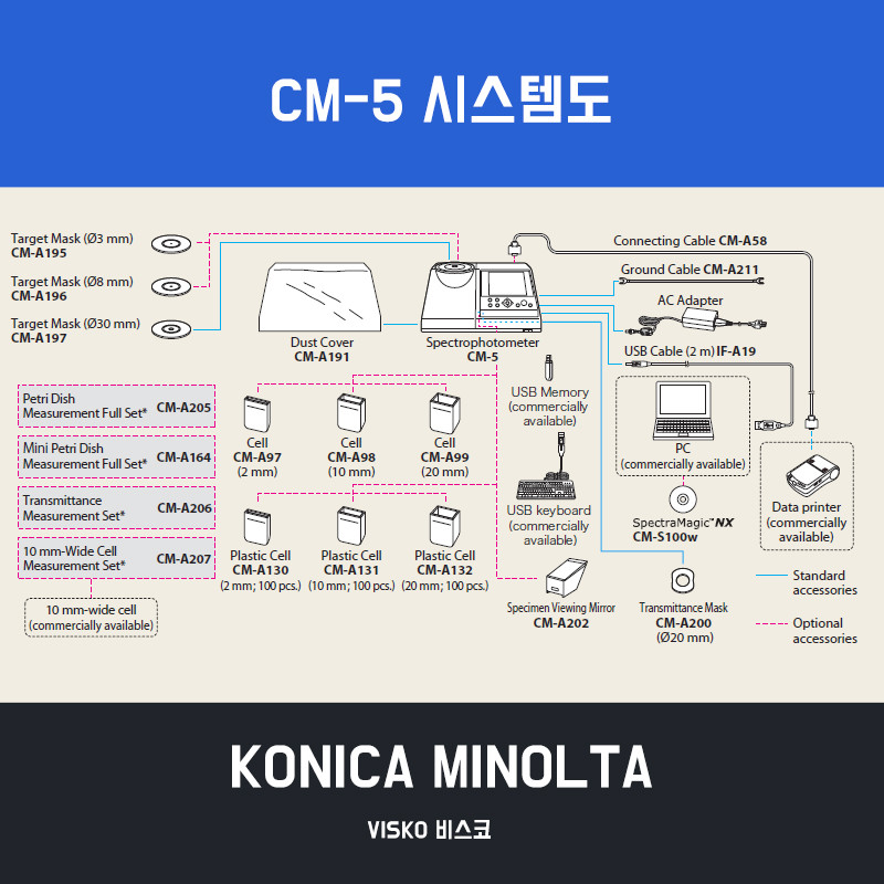 분광측색계 CM-5는 다양한 악세사리를 활용할 수 있으며 그 중에서