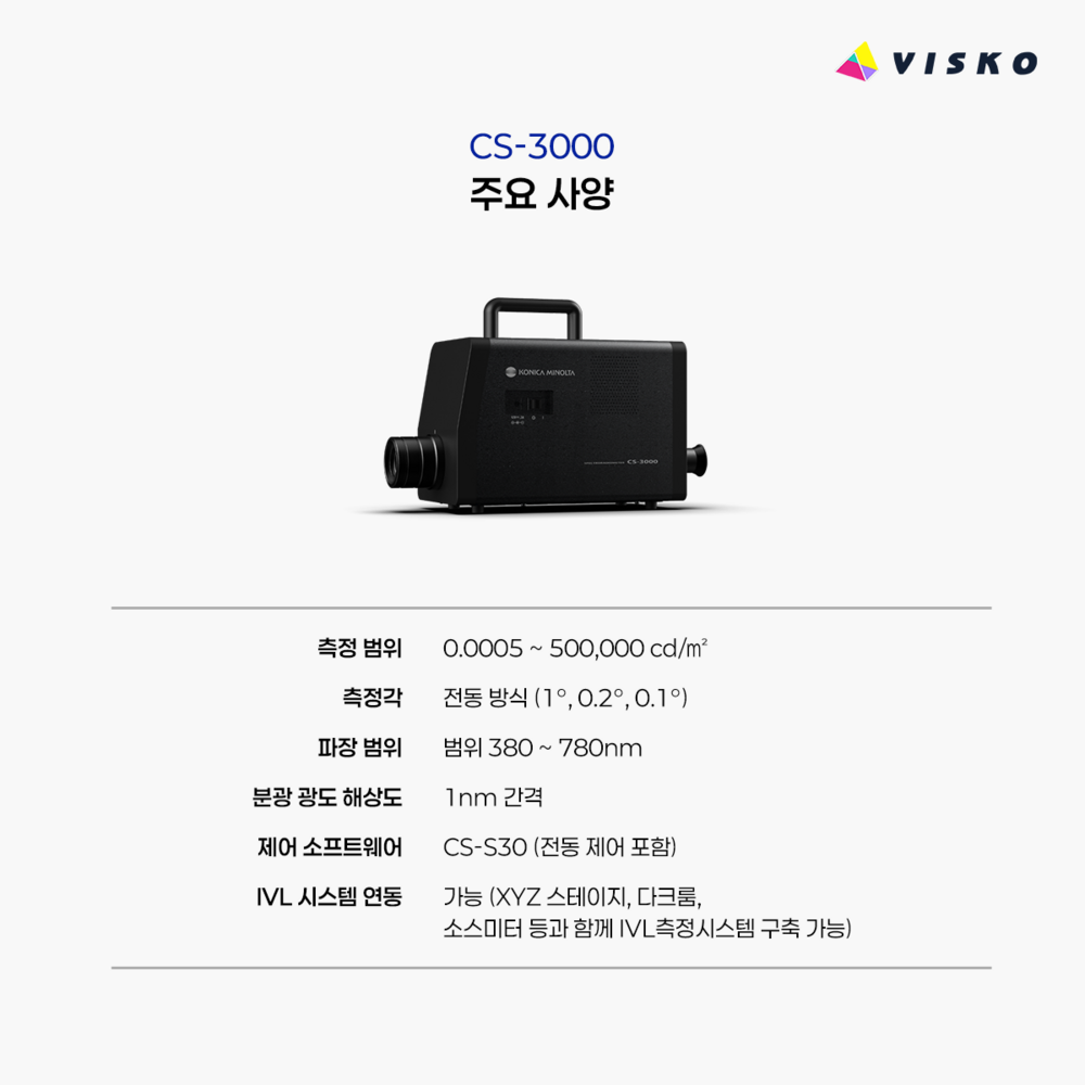 CS-3000 HDR 모델의 전단계, 정밀한 색도 평가, 조명 기기 평가 등에 널리 사용됩니다.