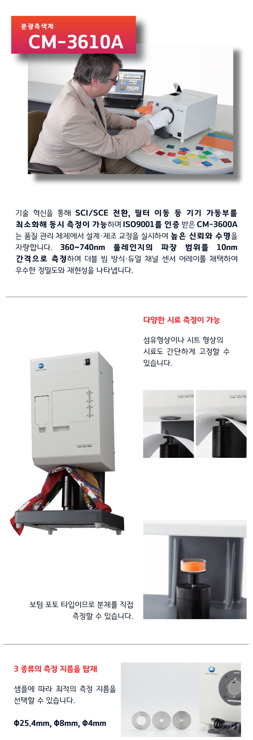 2. 측정경은 Φ25.4mm, Φ8mm, Φ4mm입니다.