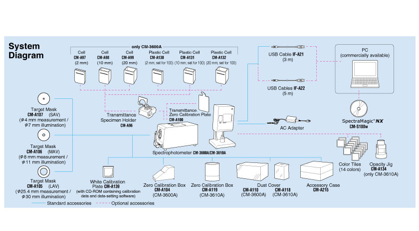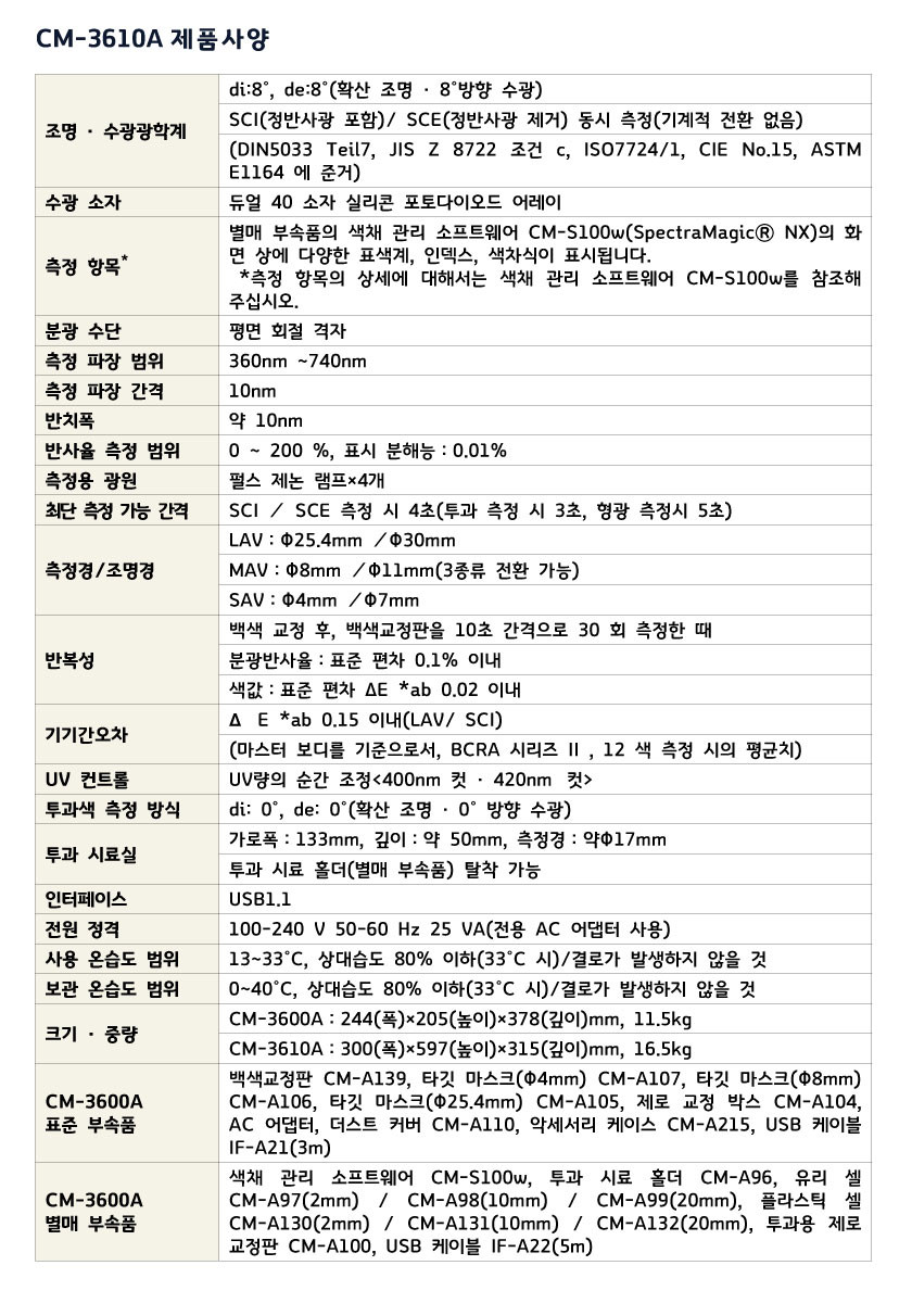 조명 수광 광학계는 기존 제품인 CM-3610d와 마찬가지로 데이터 호환이되기 때문에 이전 데이터를 그대로 불러와 CM-3610A를 사용할 수 있습니다.
