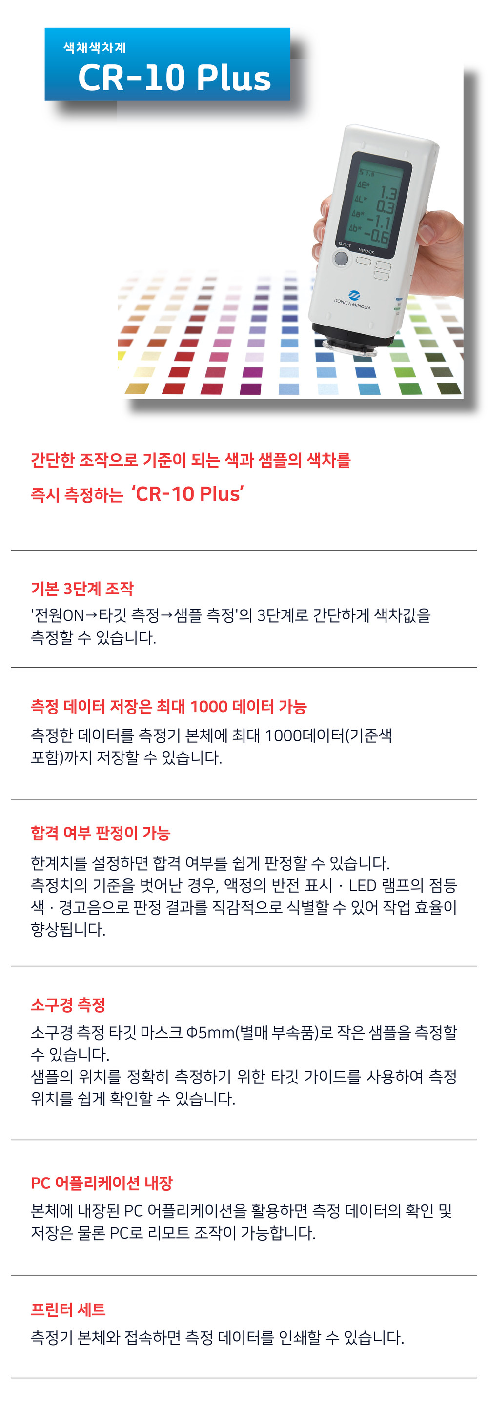 코니카미놀타 색채색차계 CR-10은 많은 사랑을 받은 모델로 이제 CR-10Plus로 업그레이드 되었습니다.