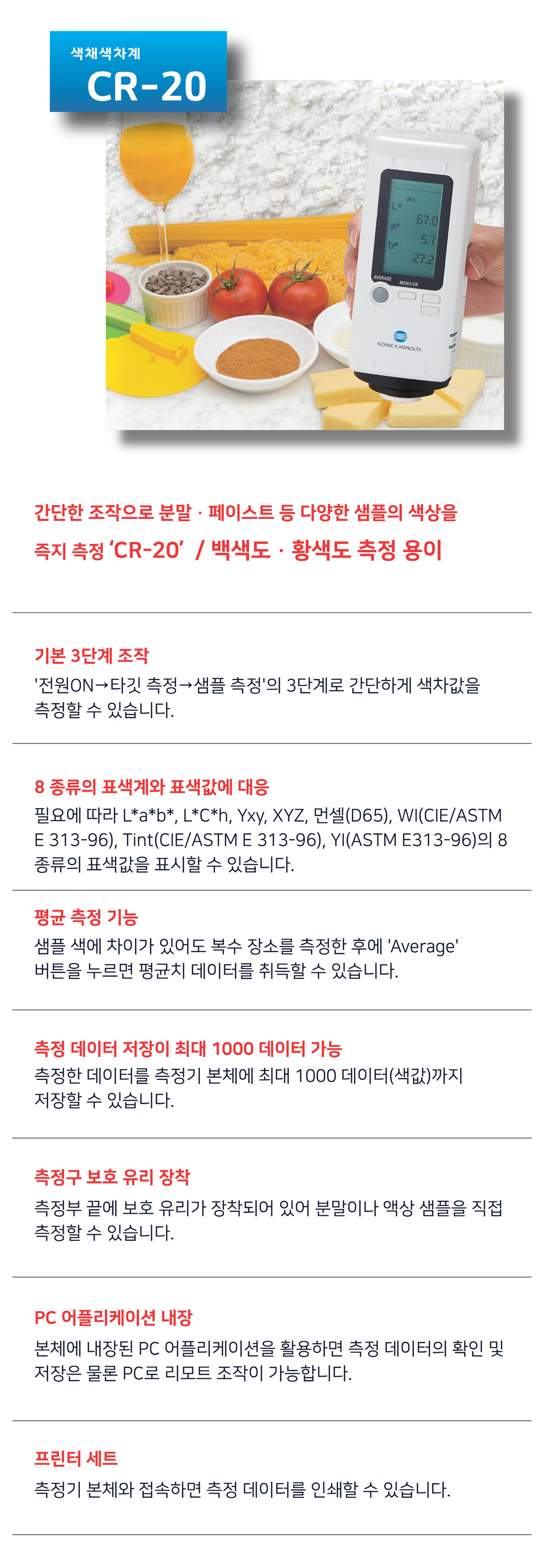코니카미놀타 색채색차계 CR-14은 단종되었습니다. 후속모델인 CR-20제품과 다양한 활용도가 많은 CR-400의 모델을 추천드립니다.
