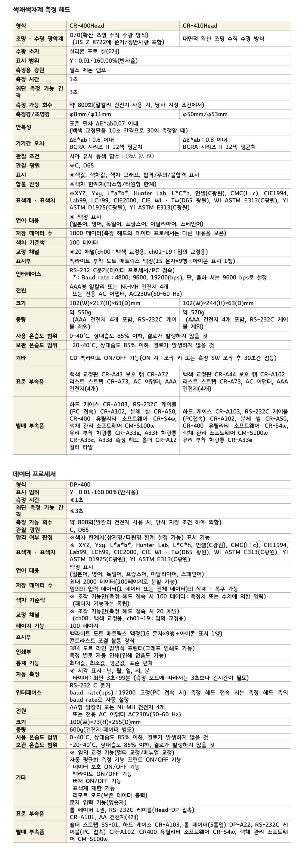 코니카미놀타 색채색차계 CR-300은 단종되었습니다. 후속모델인 CR-400을 추천드립니다.