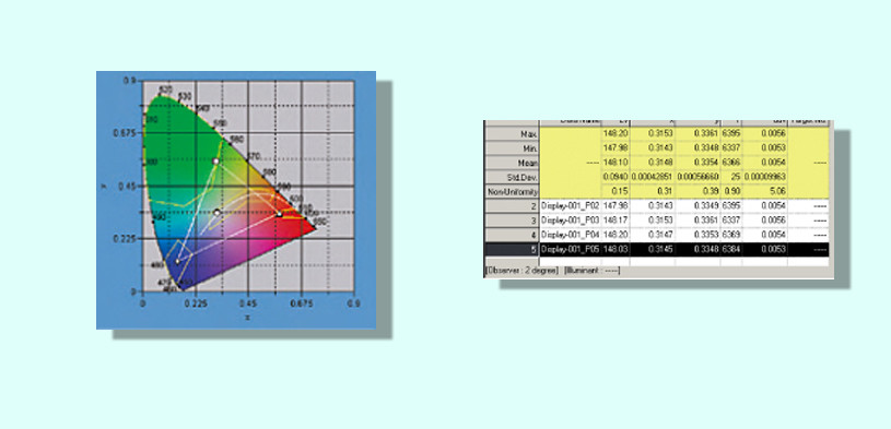 Lvxy, Lvu'v 색도를 표시한 템플릿 복수 데이터를 스프레드시트 소프트웨어에