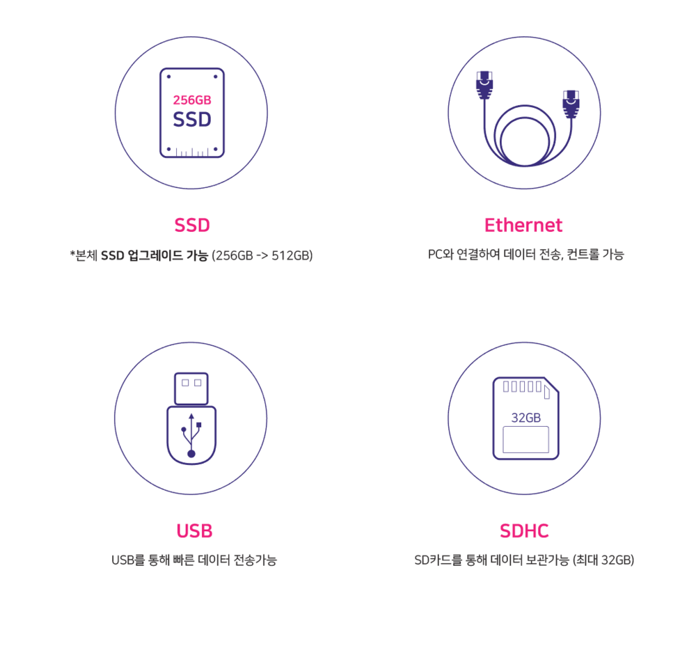 IL4는 USB포트와 SD포트가 있어 USB 플래시 드라이브, SD카드 또는 외장하드에 빠르고 쉽게 데이터를 전송 받을 수 있습니다. 구매 시 옵션사양인 SSD는 최대 512GB까지 선택하여 탑재 할 수 있습니다. SSD카드를 탑재하면 별도의 저장 위치에 데이터를 전송하지 않고 오랜 시간 촬영할 수 있습니다. 또한 SATA II , SATA III 의 옵션 선택을 통해 더 긴 시간의 녹화데이터를 얻을 수 있습니다.