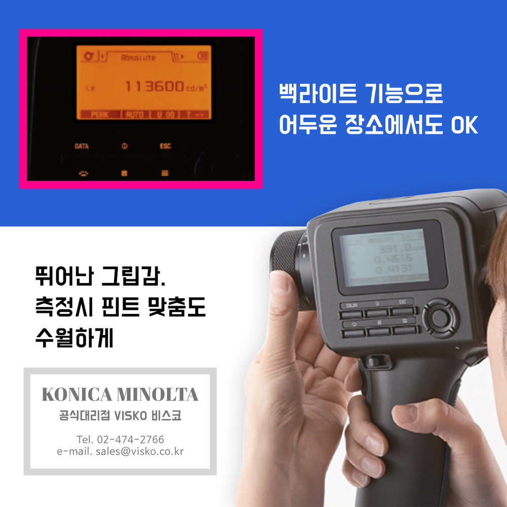 핸디타입으로 사용 편의성이 뛰어난 고정밀도 휘도핸디 타입계. 저휘도부터 고휘도까지의 광범위한 휘도 측정이 가능합니다. USB2.0 인터페이스를 탑재하여 PC로 제어할 수 있습니다.
