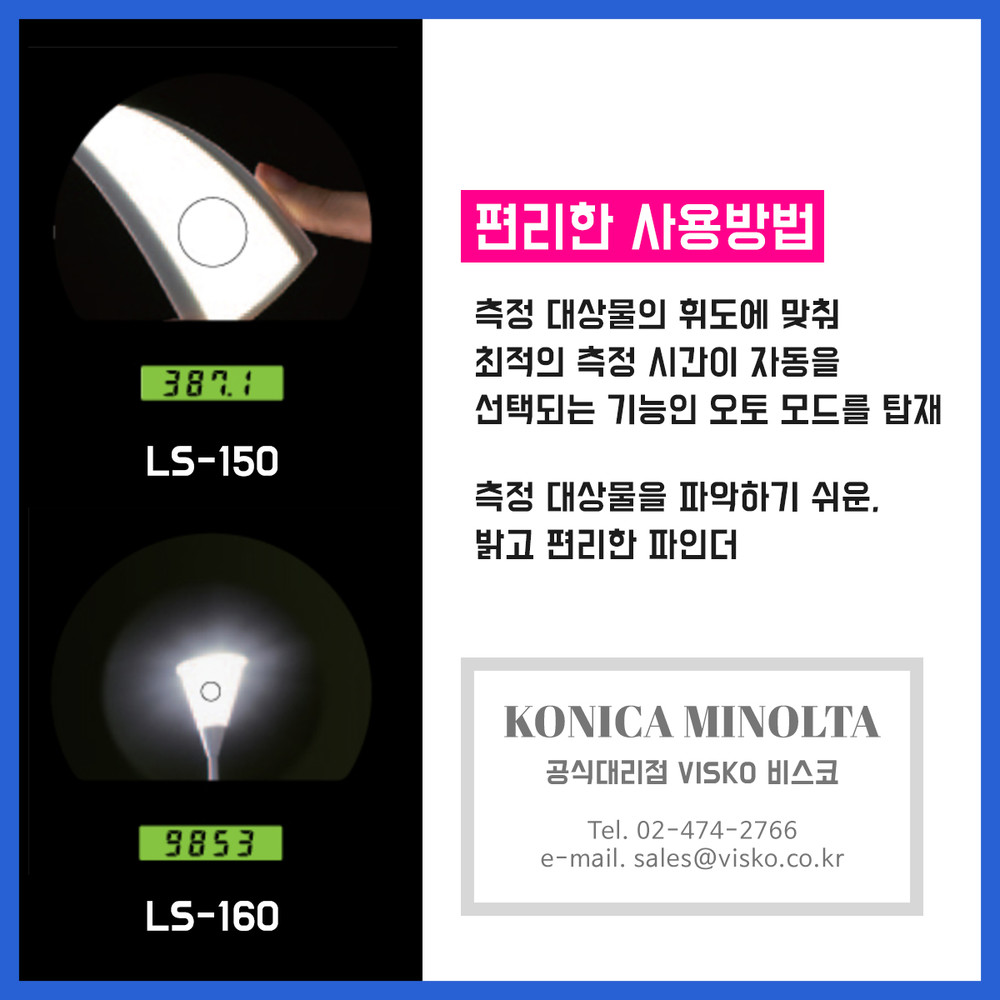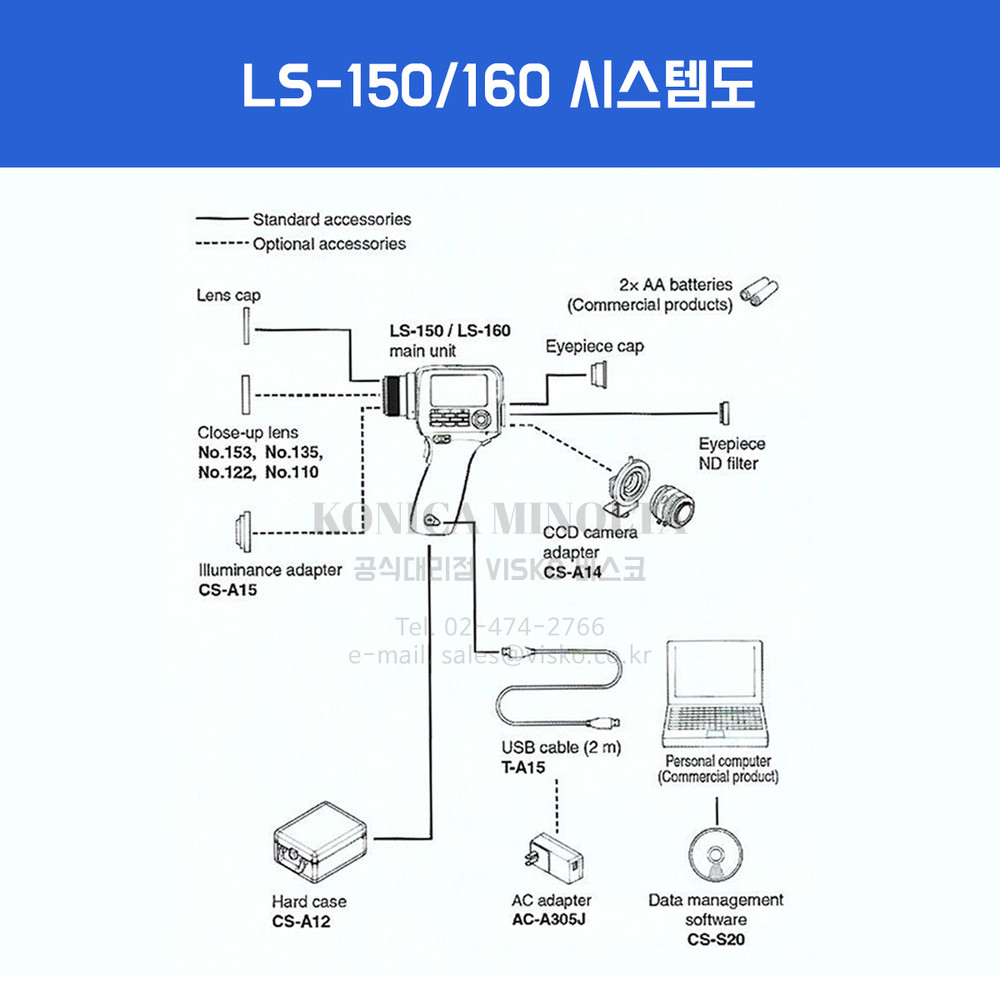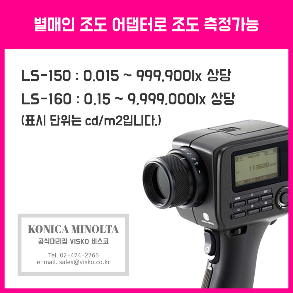 LS-150 : 0.015~999,900lx 상당 / LS-160 : 0.15~9,999,000lx 상당