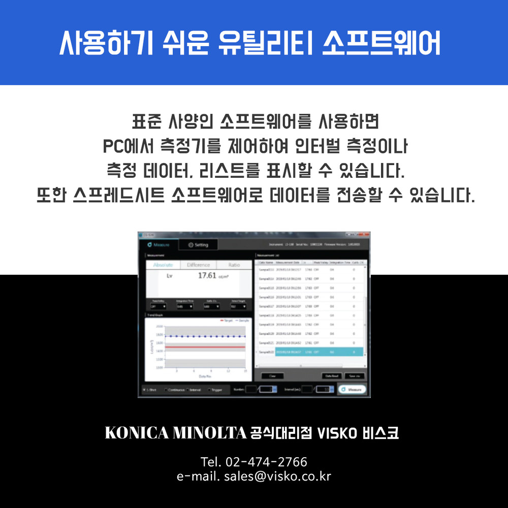 PC에서 측정기를 제어하여 인터벌 측정이나 측정데이터, 리스트를 표시할 수 있습니다.