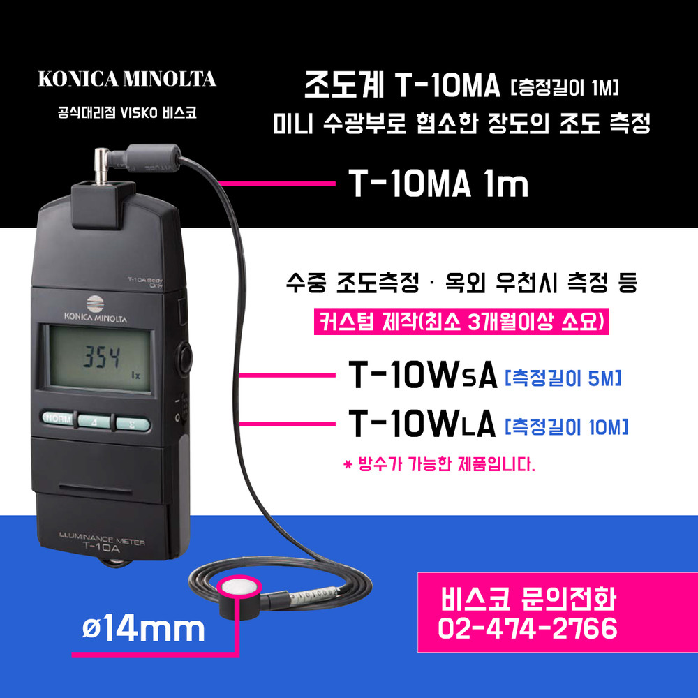 T-10WsA(코드 5m): 수중조도 측정 · 우천 시 옥외측정 가능합니다.