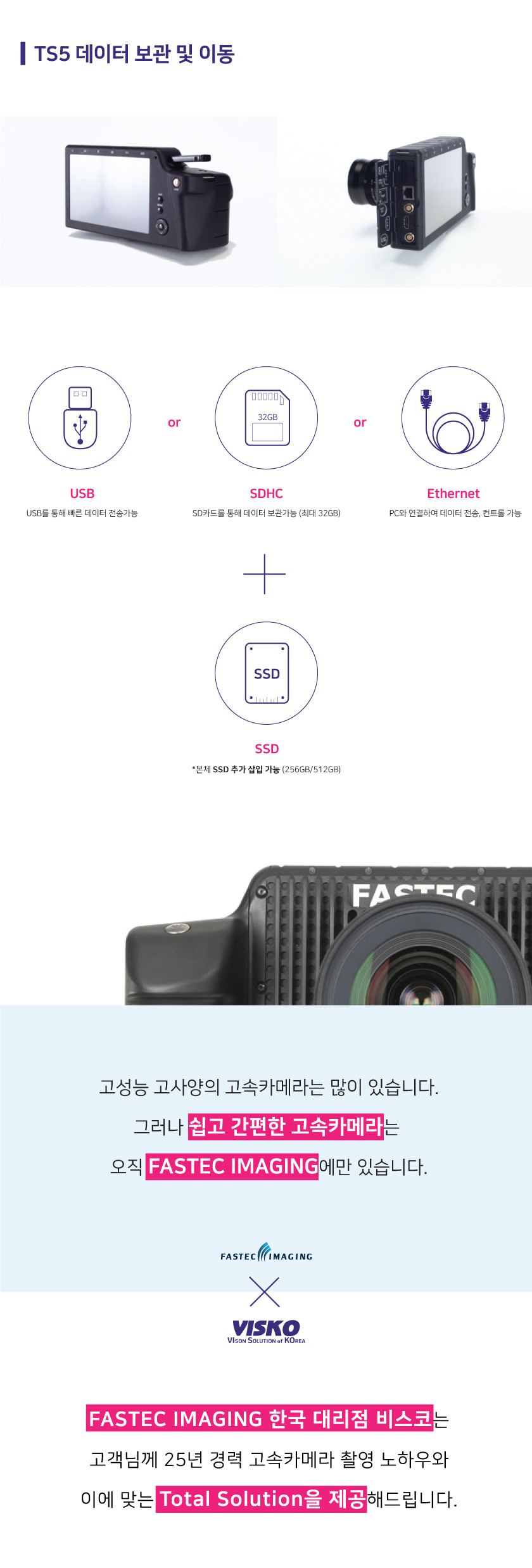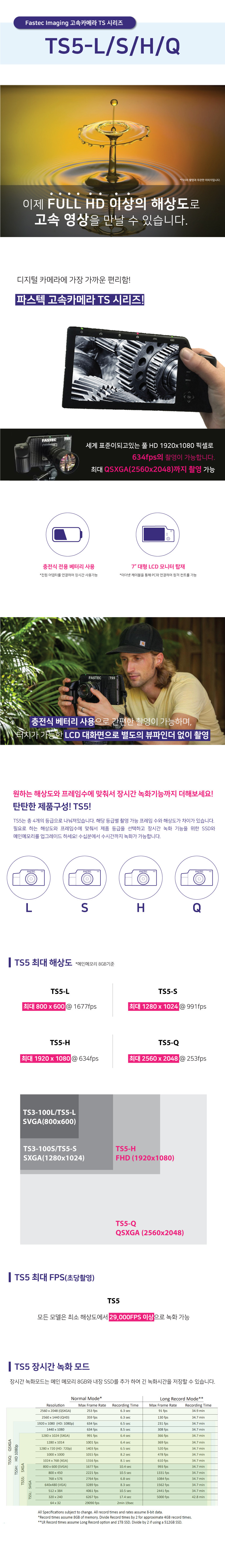 TS5 시리즈는 배터리방식이 가능한 휴대용 풀 HD 이상의 QSXGA (2560x2048)까지 지원하는 고속 카메라입니다.