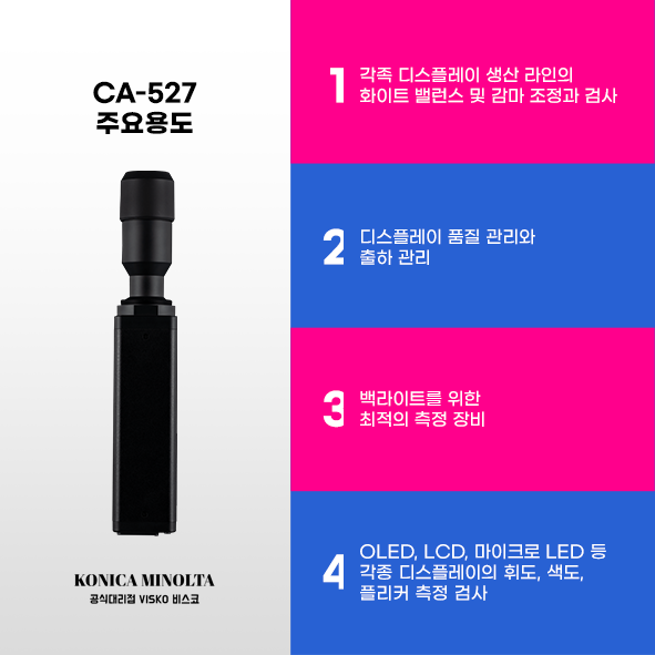CA-527 모델은 OLED 및 Micro LED와 같은 최신 디스플레이에 대한