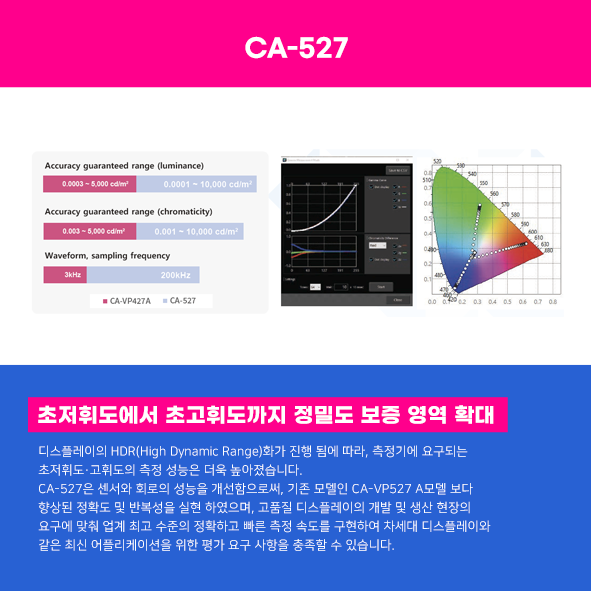 「CA-527」은 기존 Display Color Analyzer 시리즈보다