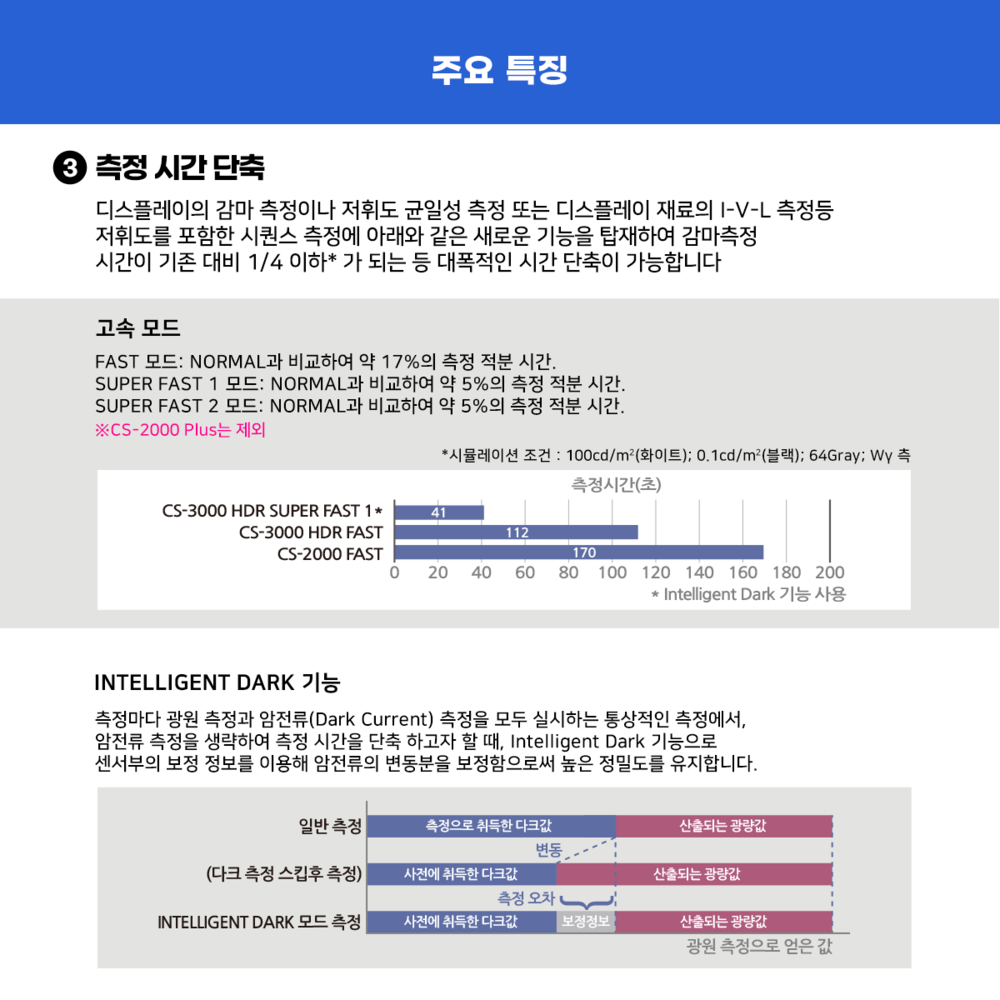 CS-3000HDR의 경우 측정시간도 기존 대비 1/4 이하가 되는 등 대폭 감소됐습니다.