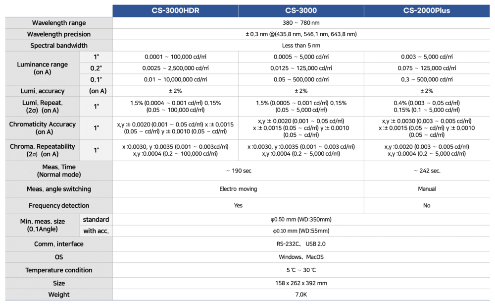 *플래그십 모델 CS-3000HDR은 폭넓은 휘도 영역 측정이 가능합니다.